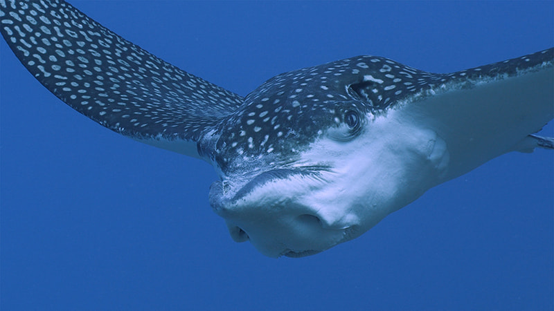 このときのマダラトビエイもどこかで逸れるかと思いましたが、どんどん近付いて来て顔にある感覚器官まで確認することができました。