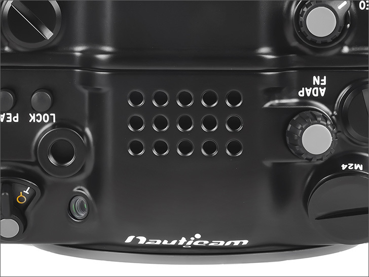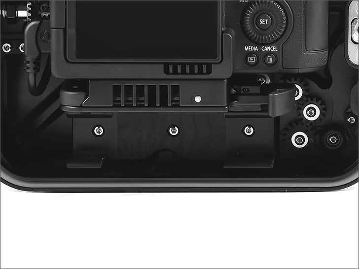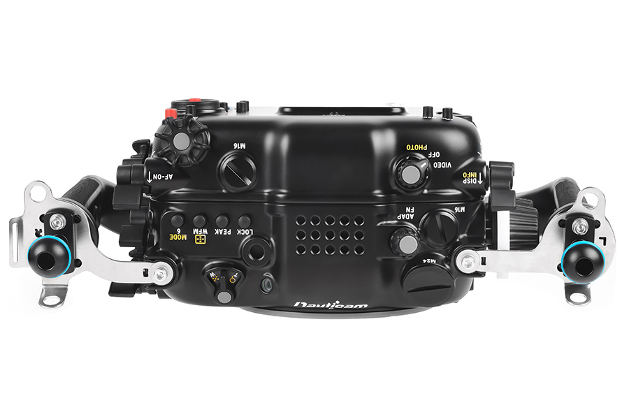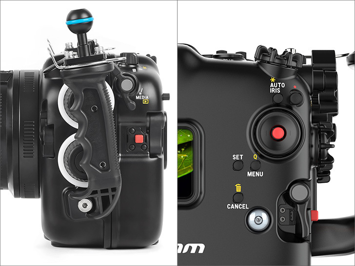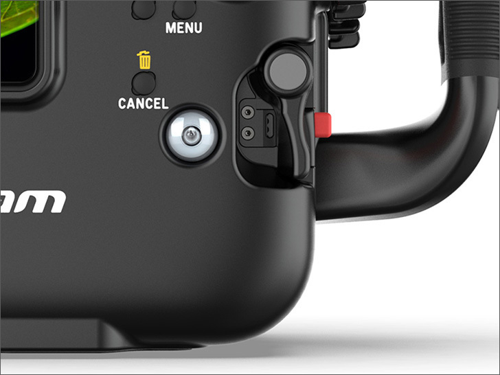 重要なコントロールはグリップ周辺に配置され、操作ボタン/レバーなどにすばやくアクセスできます。グリップを握ったまま操作できる大型ダイヤルとともに、水中での撮影に集中することができます。