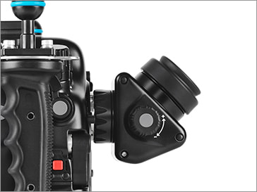 マスク越しでも全視野を拡大確認できる、オプションの『NAビューファインダーストレート』および『NAビューファインダーアングル』にユーザーご自身で簡単に換装することができます。