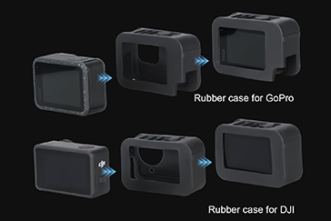 カメラを付属のラバーケースに装着することで、GoProとDJIのアクションカメラが使用できます。