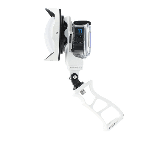 QRS-02-MB1Pに同梱されているハンドグリップにGP-FM-01を装着。アダプター部分に取り付けたGP-MM-01と組み合わせると、GoPro&UWL-03とハンドグリップの間に可変ジョイントができます。