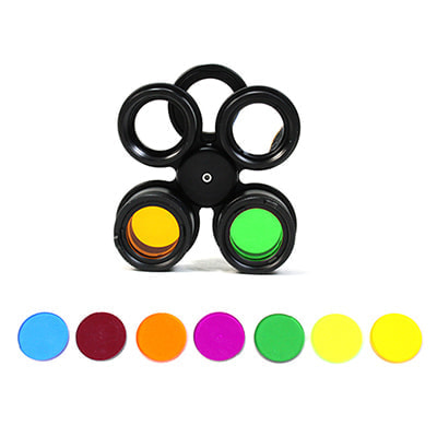 FIX NEOライトヘッドに取り付けて回転させることで、ステージ照明のような多彩なライティングが可能。それぞれ照射角の異なる3種のレンズとフィルターホルダーを回転式のシリンダーに装備し、照射角や色効果を瞬時に切り替えることができます。カラーフィルターは、ブルー、レッド、オレンジ、ピンク、グリーン、ライトグリーン、イエローの全7色。各シリンダーの照射角は56~25度となります。