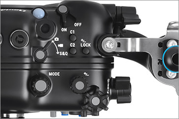 コントロールは直感的に配置され、操作ボタン/レバーを右手側に集約させました。また、ハウジングの上部にある新しい専用レバーにより、静止画、動画、S&Q(VFRビデオ)モードをすばやく切り替えることができます。右ハンドルの近くにあるデュアルサムレバーはRECボタンとAF-ONボタンを操作できるなど、重要なカメラコントロールにすばやくアクセスでき、水中での撮影に集中することができます。