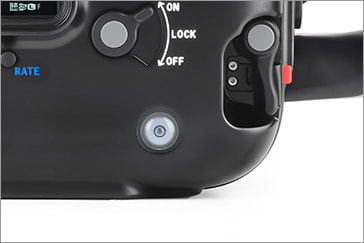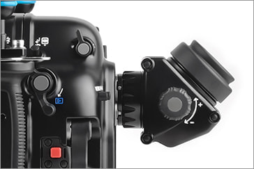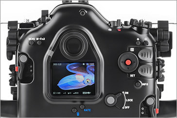 水中での操作性を追求し、右グリップから手を離すことなく、電子ダイヤル、マルチファンクション、デュアルサムレバーに加えピアノキーのクイックコトロール、セットレバーが操作でき、左グリップから手を離すことなく、再生、LCD から EVFの切り換えにアクセスでき、コントロールリング マウントアダプターも操作できます。