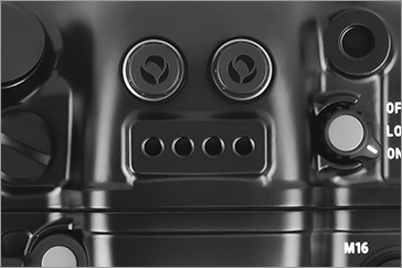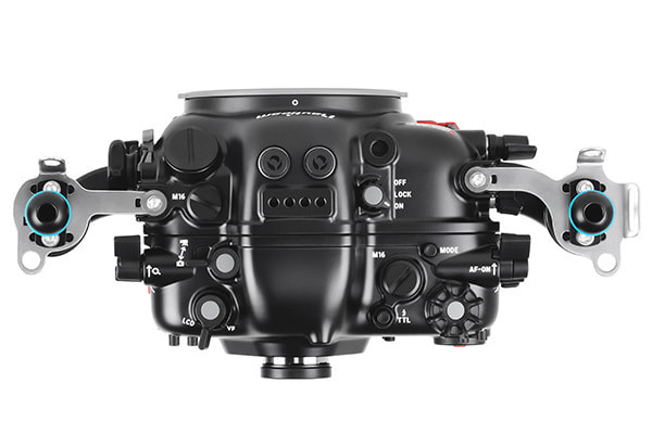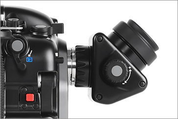 水中での操作性を追求し、右グリップから手を離すことなく、メイン電子ダイヤル、サブ電子ダイヤル、マルチファンクション、デュアルサムレバーが操作でき、AF-ON、Qボタン、M-Fn、動画撮影やISO感度設定などに素早くアクセスできます。左グリップから手を離すことなく、再生、LCD から EVFの切り換えにアクセスでき、コントロールリング マウントアダプターも操作できます。