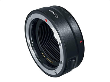 RFレンズに加え、「Canon マウントアダプター EF-EOS R」を装着して豊富なEFレンズも使用が可能。マウントアダプターを装着してもEFレンズ用のギアやポートがそのまま使用することができます。