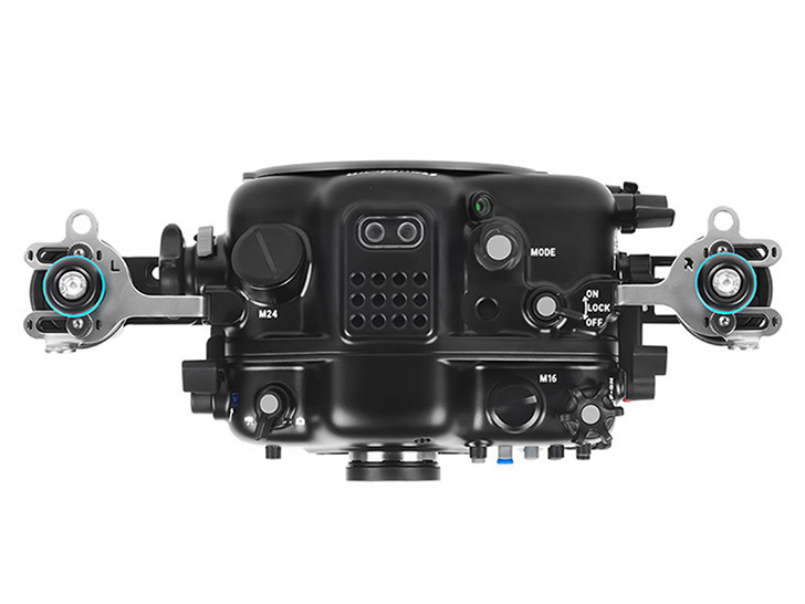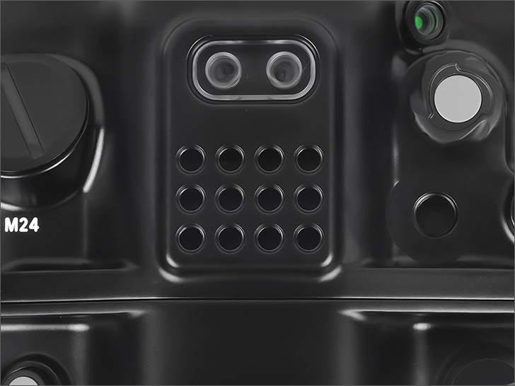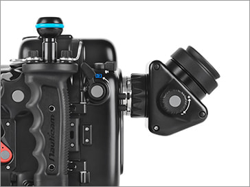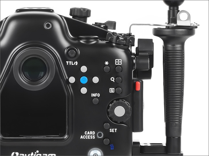 水中での操作性を向上させるため、操作ボタン/レバーを右手側に集約させました。グリップから手を離すことなく、メイン電子ダイヤル、サブ電子ダイヤル、コントロールダイヤル、デュアルサムレバー、サブレバーで、AF-ON、M-Fn、動画撮影や再生などに素早くアクセスできます。