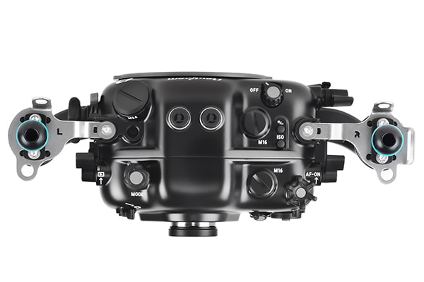 コントロールは直感的に配置され、操作ボタン/レバー/ダイヤルは左右のグリップ近くに配置。専用のデュアルサムレバー(左側に「再生」、右側に「AF-ON」)に加えて、左ハンドルにはズームギアへのアクセスも備わっており、すばやく調整できます。画像の確認を容易にするために、「拡大」ボタンと「縮小」ボタンが右側ハンドル近くに配置されています。