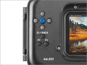 503 UltraBrightの本体をコントロールするジョイスティックの操作感を水中でも再現。ノーティカム一眼レフハウジングのノウハウを継承し、厚手のグローブを装着していても簡単にアクセスできます。
