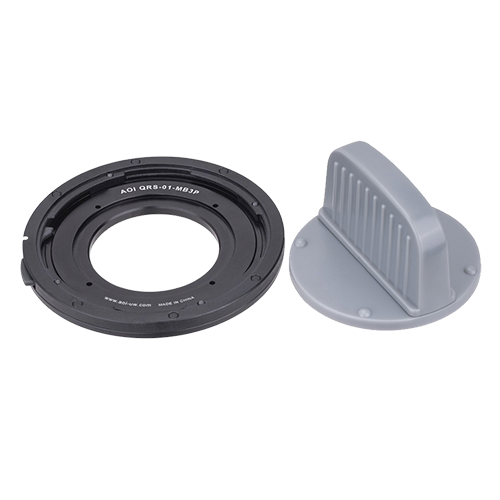 コンバージョンレンズを瞬時に取り付け取り外しができる「クイックリリースシステム」のマウントベースです。