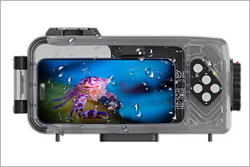 スマートハウジング専用設計のコンバージョンレンズをオプションで用意。超広角撮影からマクロ撮影まで、従来のスマートフォンハウジングの常識を超えた本格的な水中撮影も可能です。