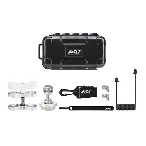 前モデル(AOI-SRK-01)を、より使いやすく改善。ホットシューベースはボールマウントを手で固定ができるダイヤル付きタイプ(AOI-CXM-BM-02)になりました。また、光ファイバーケーブルは汎用性の高いゴムブッシュコネクター(脱着タイプ)に変更、取り回しを90°方向に変換可能にするケーブルクリップも追加されています。