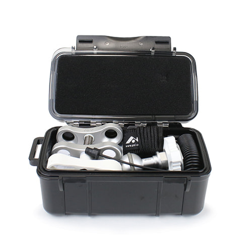 UCS-Q1-RCストロボ用のスターターキットです。光ファイバーケーブル、クランプ、ボールマウントなどがセットになっているので、あれこれ迷ったり揃え忘れる心配はありません。TGシリーズなどOLYMPUS製カメラに自動調光対応するQ1-RCストロボを防水プロテクタに取り付けてすぐに使うことができます。