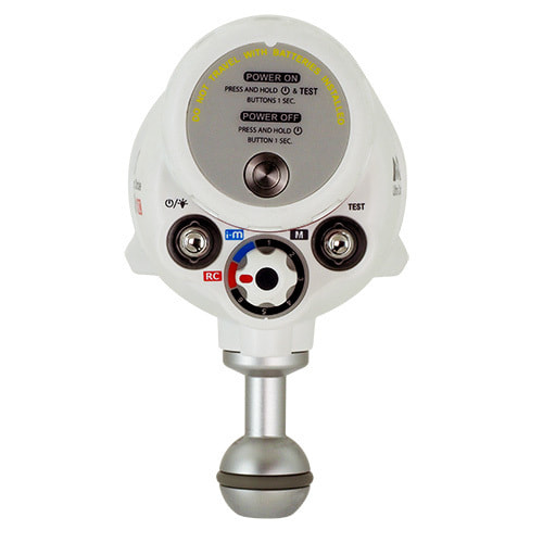 UCS-Q1-RCは、最大700ルーメンの大光量LEDライトも搭載しています。光量は、25%/50%/100%の3段階から選択が可能。国内メジャー水中ストロボメーカーのフォーカスライト光量(全光束)にはない圧倒的な光量です。大容量バッテリー搭載なので、光量100%で照射した場合でも連続照射時間は130分です。