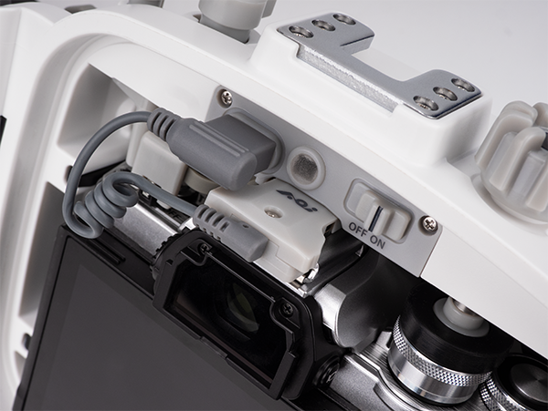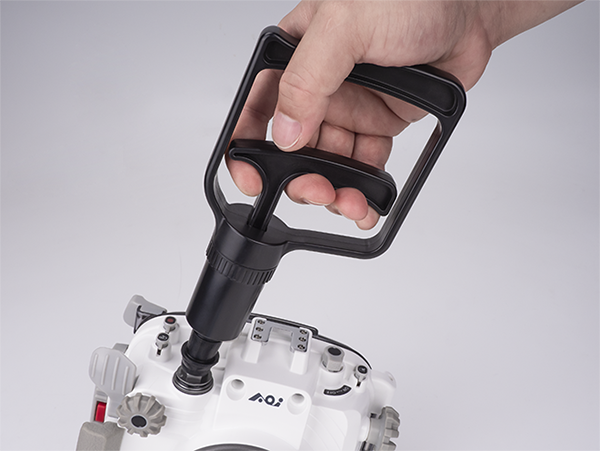 ハウジング内の圧力をモニターすることで、ハウジングの密閉性を確認するセンサーです。付属のポンプをリアケースのバキュームコネクターに接続して内部の空気を吸い出すことで、ハウジングの内部を陰圧にします。