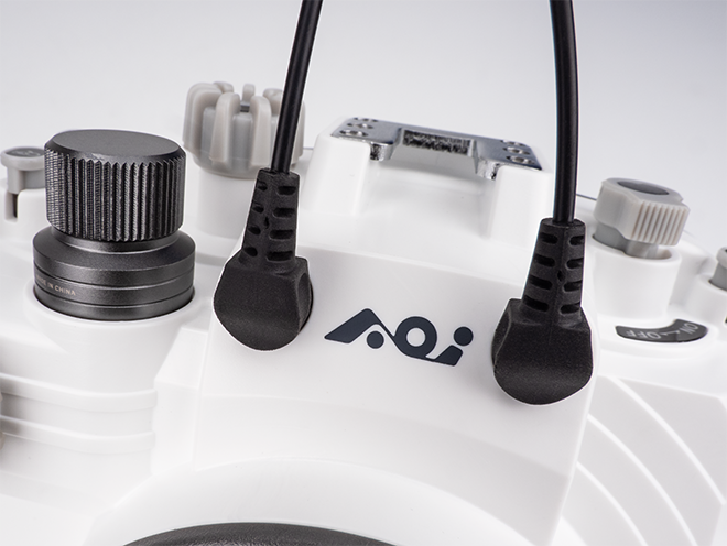 外部ストロボ発光させるための装置です。フラッシュトリガーをカメラのホットシューに接続し、光ファイバーケーブルで外部ストロボとハウジングを結ぶことでカメラの発光信号を伝達、ストロボが同調(発光)します。